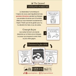 Conçu par The Oatmeal (le célèbre auteur de BD) et les créateurs d’Exploding Kittens, Thérapie Foireuse est un jeu à l’humour noir délibérément trash, réservé aux adultes. Avec plus de 400 cartes, chaque partie est unique. Âmes sensibles s'abstenir ! Les autres s'amuseront...comme des petits fous !