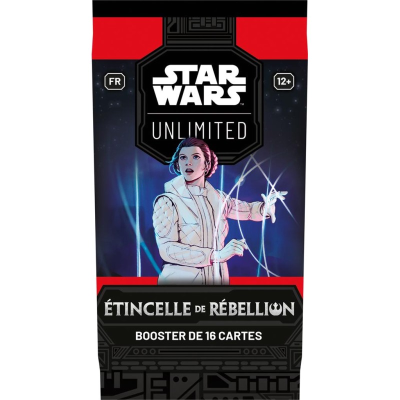 Chaque booster de ce premier cycle Étincelle de Rébellion contient 16 cartes aléatoires à ajouter à votre collection, dont 9 Communes, 3 Peu Communes, 1 Rare ou Légendaire, 1 Leader, 1 Base/Jeton, 1 carte Foil (brillante).