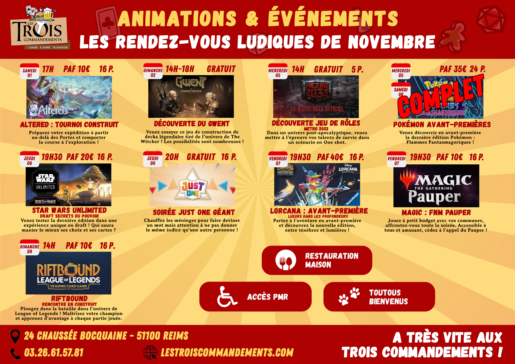 Vous y retrouverez le nombre maximum de places pour chaque évènement, et si vous souhaitez réserver la vôtre, contactez-nous par mail, réseaux sociaux, téléphone ou directement en boutique.