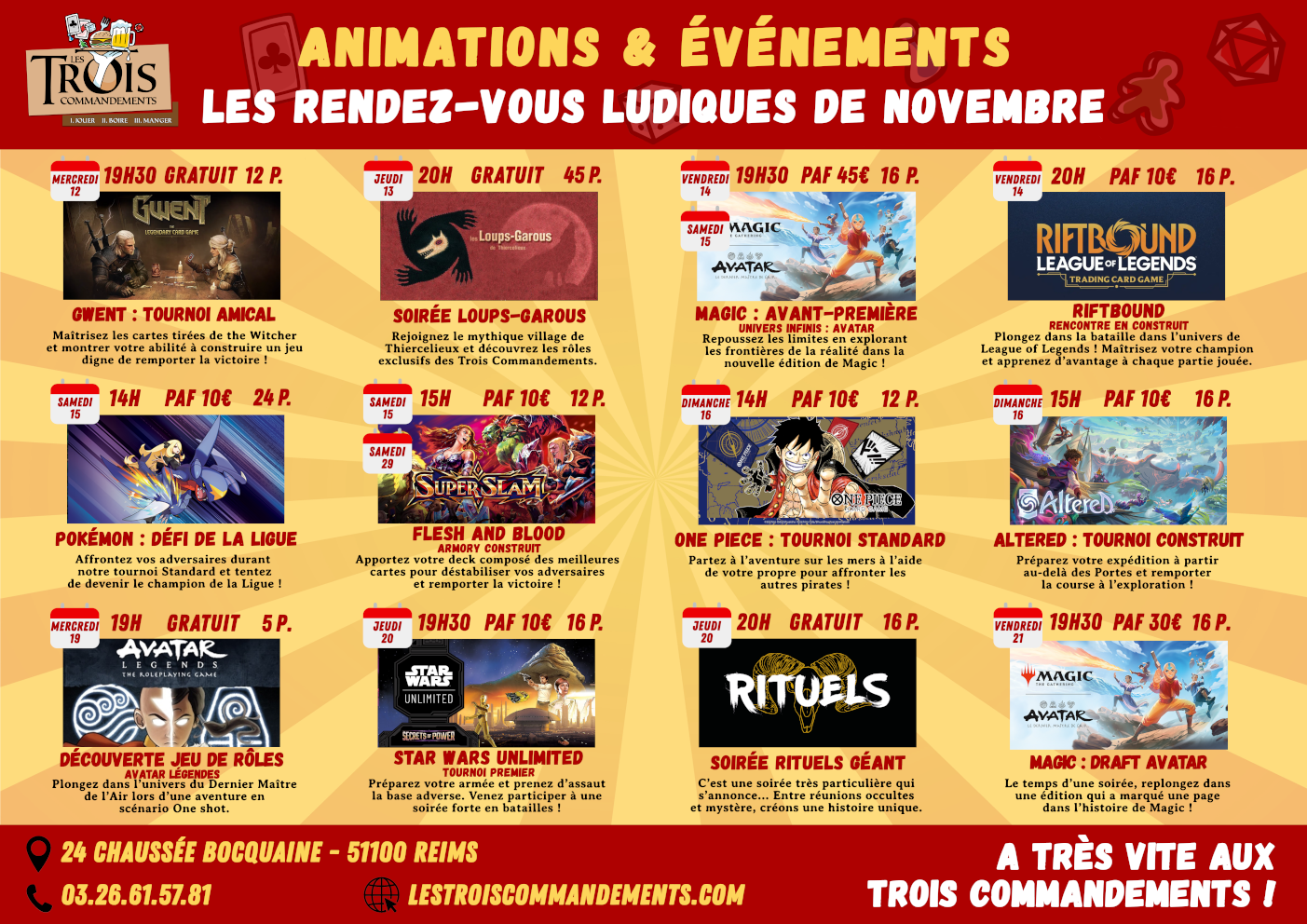 Nous organisons des évènements toutes les semaines autour de différents jeux de société, jeux de cartes et jeux de rôles.